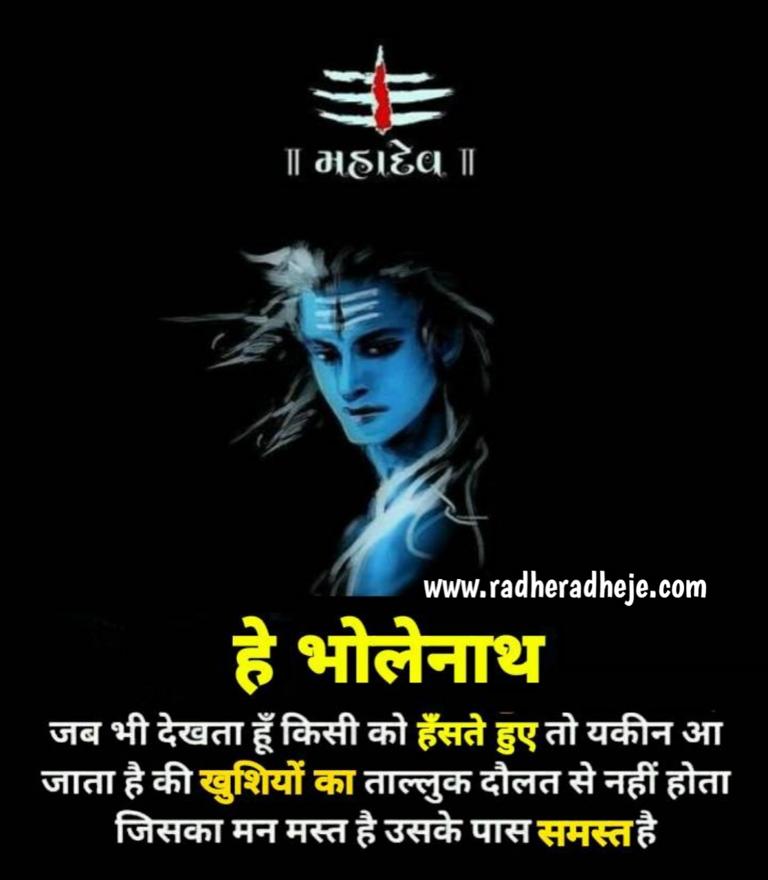 जब भी देखता हूँ किसी को हँसते हुए तो यकीन आ जाता है की खुशियों का ताल्लुक दौलत से नहीं होता जिसका मन मस्त है उसके पास समस्त है जय भोलेनाथ