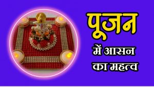 कभी जमीन पर बैठकर पूजा नहीं करनी चाहिए, ऐसा करने से पूजा का पुण्य भूमि को चला जाता है। नंगे पैर पूजा करना भी उचित नहीं है। हो सके तो पूजा का आसन व वस्त्र अलग रखने चाहिए जो शुद्ध रहे। लकड़ी की चैकी, घास फूस से बनी चटाई, पत्तों से बने आसन पर बैठकर पूजन भक्त को मानसिक अस्थिरता, बुद्धि विक्षेप, चित्त विभ्रम, उच्चाटन, रोग शोक आदि उत्पन्न करते हैं। अपना आसन, माला आदि किसी को नहीं देने चाहिए, इससे पुण्य क्षय हो जाता है। निम्न आसनों का विशेष महत्व है।