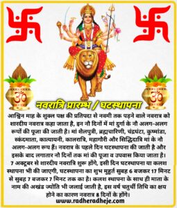नवरात्रि प्रथम दिन (घटस्थापना)- 26 सितंबर 2022 (सोमवार)