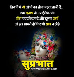 जिंदगी में दो लोगों का होना बहुत जरूरी है एक कृष्ण जो न लड़े फिर भी जीत पक्की कर दे और दूसरा कर्ण जो हार सामने हो फिर भी साथ न छोड़े
