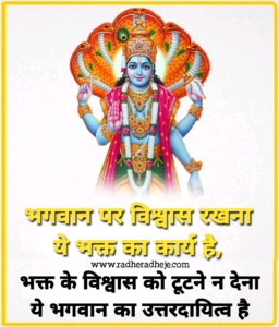 भगवान पर विश्वास रखना ये भक्त का कार्य है, भक्त के विश्वास को टूटने न देना ये भगवान का उत्तरदायित्व It is the duty of the devotee to have faith in God, it is the responsibility of God not to let the faith of the devotee be broken.