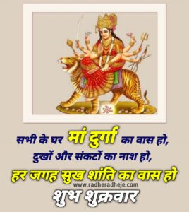 सभी के घर मां दुर्गा का वास हो, दुखों और संकटों का नाश हो, हर जगह सुख शांति का वास हो May Maa Durga reside in everyone’s house, May sorrows and troubles be destroyed, May happiness and peace reside everywhere.