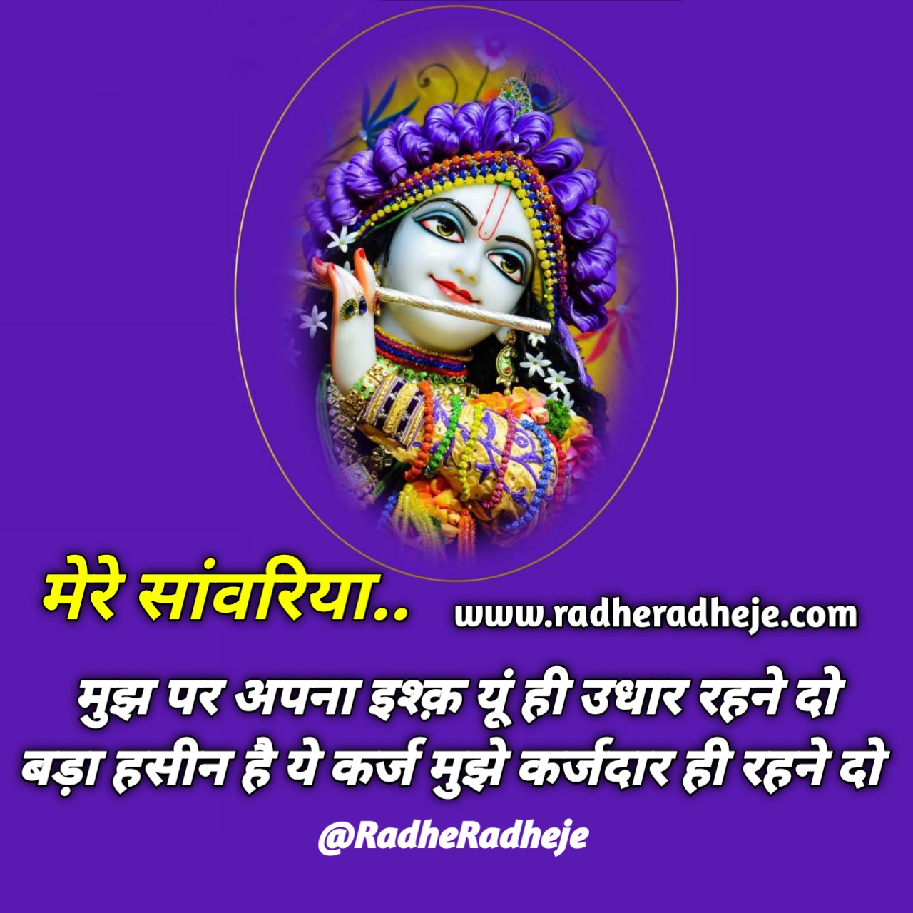 मेरे सांवरिया मुझ पर अपना इश्क यू ही उदार रहने दो बड़ा हसीन है यह कर्ज मुझे कर्जदार रहने दो जय श्री राधे कृष्णा
