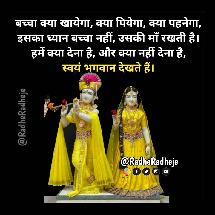 बच्चा क्या खायेगा, क्या पियेगा, क्या पहनेगा, इसका ध्यान बच्चा नहीं, उसकी माँ रखती है। हमें क्या देना है, और क्या नहीं देना है, स्वयं भगवान देखते हैं।