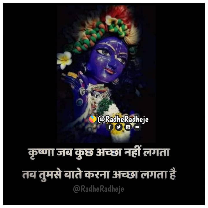 जय श्री राधे कृष्णा RadheRadheje 5 years ago कृष्णा जब कुछ अच्छा नहीं लगता तब तुमसे बाते करना अच्छा लगता है