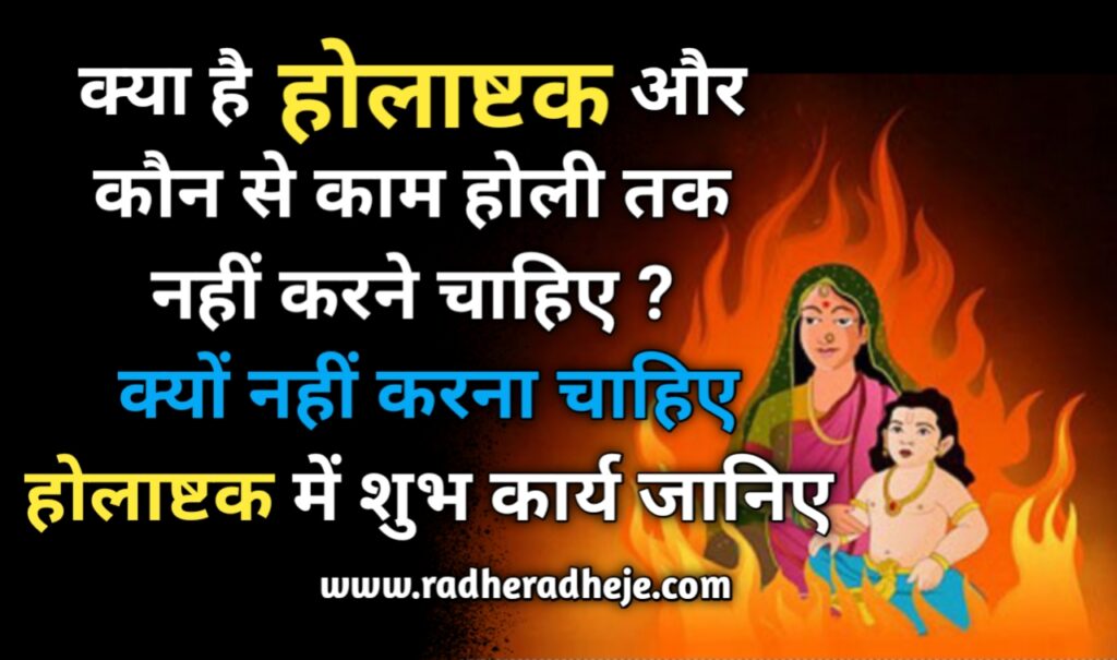 होलाष्टक से तात्पर्य है कि होली के 8 दिन पूर्व से है अर्थात धुलंडी से आठ दिन पहले होलाष्टक की शुरुआत हो जाती है। इन दिनों शुभ कार्य करने की मनाही होती हैं। हिन्दू धर्मो के 16 संस्कारों को न करने की सलाह दी जाती है।