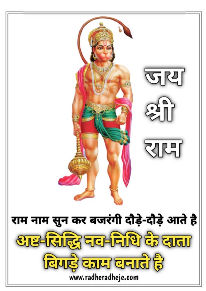 जय श्रीराम राम नाम सुन कर बजरंगी दौड़े-दौड़े आते है अष्ट-सिद्धि नव-निधि के दाता बिगड़े काम बनाते है RadheRadheje 5 years ago राम नाम सुन कर बजरंगी दौड़े-दौड़े आते है अष्ट-सिद्धि नव-निधि के दाता बिगड़े काम बनाते है जय श्रीराम