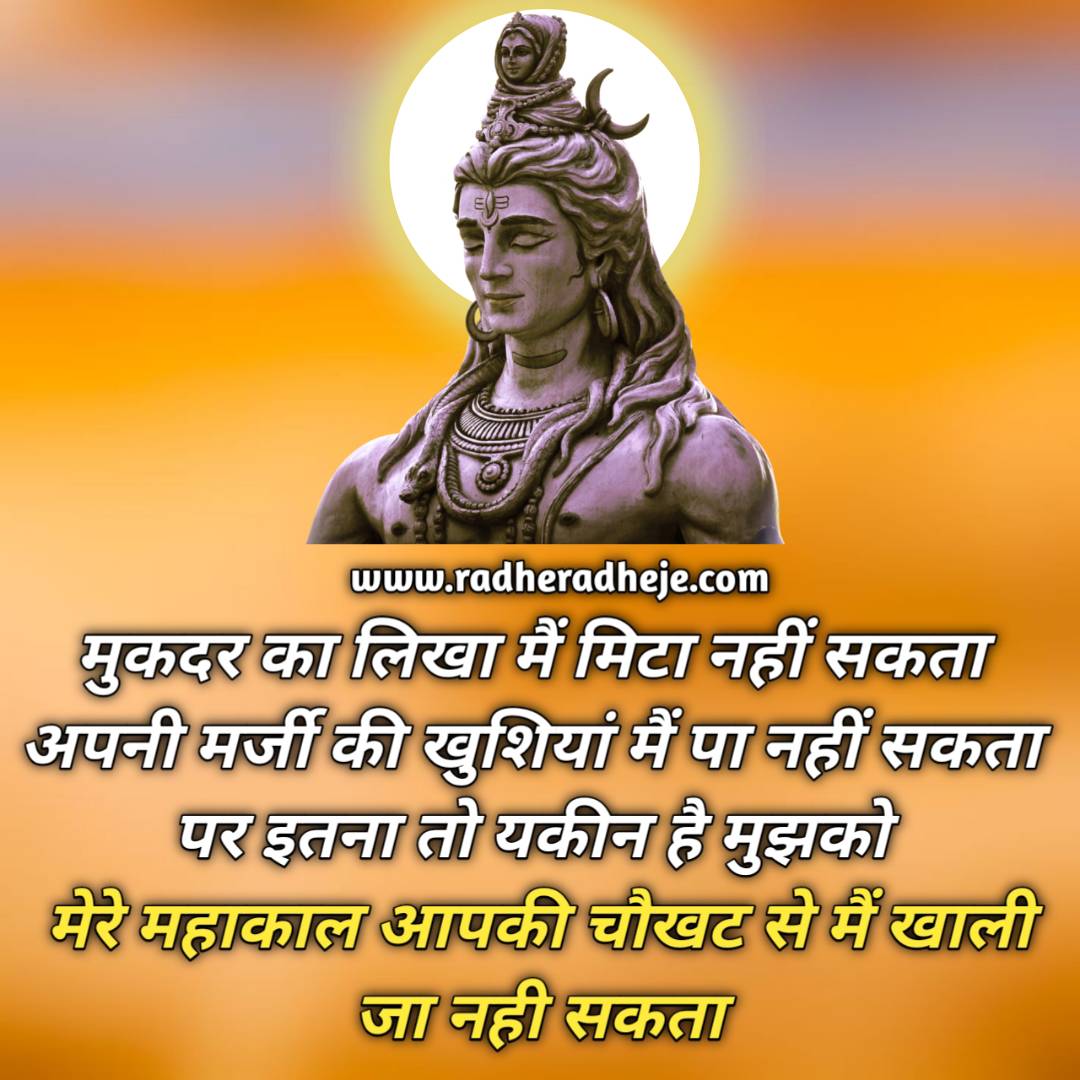 मुकदर का लिखा मैं मिटा नहीं सकता अपनी मर्जी की खुशियां मैं पा नहीं सकता पर इतना तो यकीन है मुझको मेरे महाकाल आपकी चौखट से मैं खाली जा नही सकता