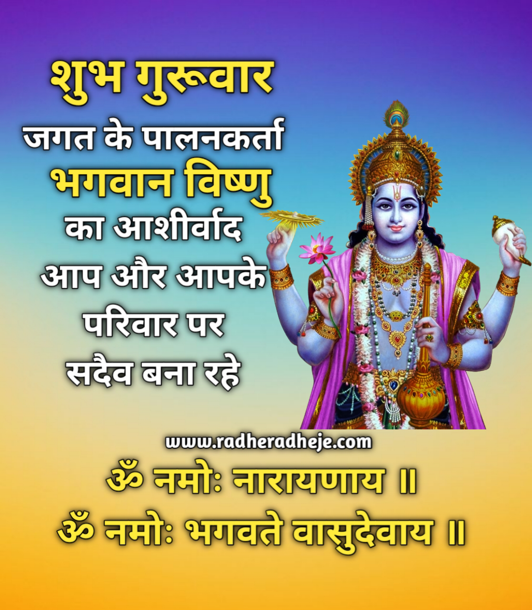 शुभ गुरूवार जगत के पालनकर्ता भगवान विष्णु का आशीर्वाद आप और आपके परिवार पर सदैव बना रहे