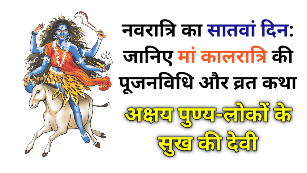 श्री माँ दुर्गा का सप्तम रूप कालरात्रि हैं। ये काल का नाश करने वाली हैं, इसलिए कालरात्रि कहलाती हैं। नवरात्रि के सप्तम दिन इनकी पूजा और अर्चना की जाती है। इस दिन साधक को अपना चित्त भानु चक्र (मध्य ललाट) में स्थिर कर साधना करनी चाहिए। संसार में कालो का नाश करने वाली देवी कालरात्री ही है। भक्तों द्वारा इनकी पूजा के उपरांत उसके सभी दु:ख, संताप भगवती हर लेती है। दुश्मनों का नाश करती है तथा मनोवांछित फल प्रदान कर उपासक को संतुष्ट करती हैं।