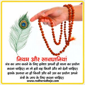 मंत्र का जाप करने के लिए हमेशा अपनी ही माला का प्रयोग करना चाहिए। ना तो हमें वह किसी और को देनी चाहिए। इसके अलावा ना ही किसी और की उस का प्रयोग अपने मंत्रों के जाप के लिए करना चाहिए।
