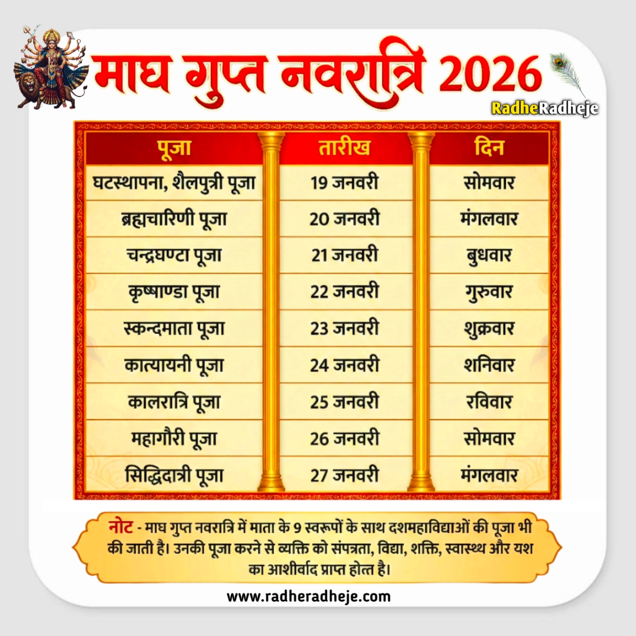 📅 माघ गुप्त नवरात्रि 2026 तिथि