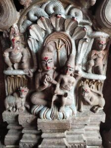 पूरी दुनिया में यह एकमात्र ऐसा मंदिर है, जिसमें विष्णु भगवान की जगह भगवान भोलेनाथ सर्प शय्या पर विराजमान हैं। मंदिर में स्थापित प्राचीन मूर्ति में शिवजी, गणेशजी और मां पार्वती के साथ दशमुखी सर्प शय्या पर विराजित हैं। शिवशंभु के गले और भुजाओं में भुजंग लिपटे हुए हैं।