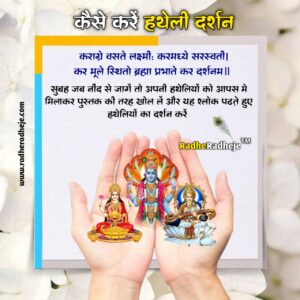हथेलियों के दर्शन के समय मन में संकल्प लें कि मैं परिश्रम कर दरिद्रता और अज्ञान को दूर करूंगा और अपना व जगत का कल्याण करूंगा।