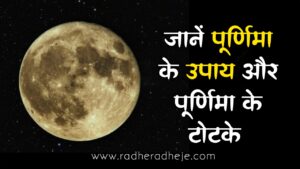 पूर्णिमा या पूनम के दिन चंद्रमा अपने पूर्ण आकर में होते है। शास्त्रों के अनुसार इस दिन चंद्रमा का विशेष प्रभाव होता हैं। साथ ही यह दिन माता लक्ष्मी को भी विशेष प्रिय होता है। पूर्णिमा के दिन किये गए उपायों का विशेष और शीघ्र प्रभाव होता है। शास्त्रों में पूर्णिमा को करने योगय बहुत से उपाय और टोटके बताये गए हैं। आइये जानते है कुछ ऐसे ही उपाय