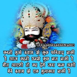 करनी मुझे श्याम से कुछ फरियाद बाकी है आज कहनी उनसे कुछ बात बाकी है “मौत”आएगी तो कह देगे जरा रुक अभी मेरे श्याम से एक मुलाकात बाकी है