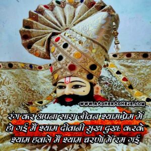 रंग कर अपना सारा जीवन श्याम प्रेम में हो गई मैं श्याम दीवानी सुख दुखः करके श्याम हवाले मैं श्याम चरणों में रम गई Coloring my whole life I fell in love with Shyam, I am a shyam addict.