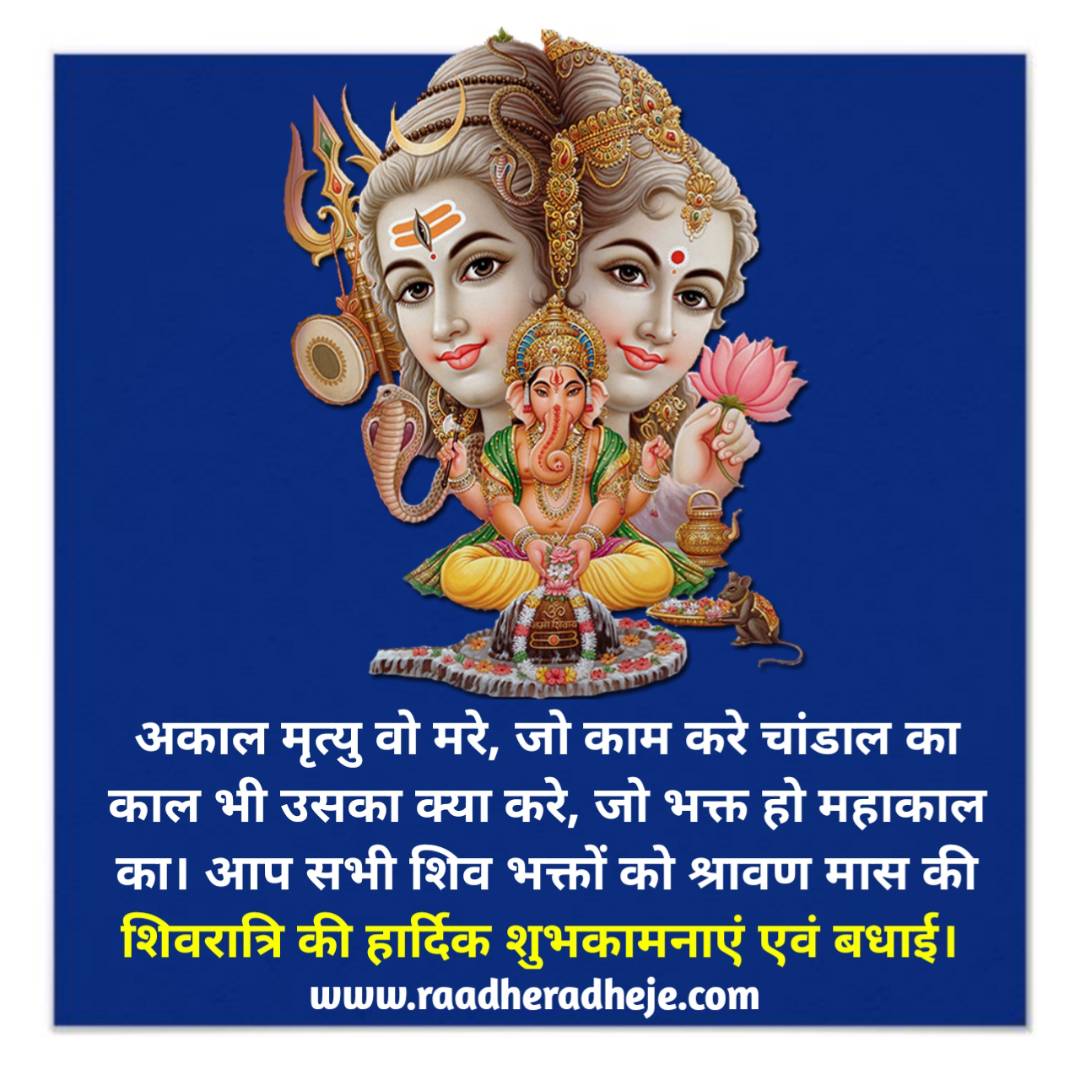 अकाल मृत्यु वह मरे जो काम करे चांडाल का काल भी उसका क्या करे जो भक्त हो महाकाल का आप सभी भक्तों को श्रावण मास की शिवरात्रि की हार्दिक शुभकामनाएं