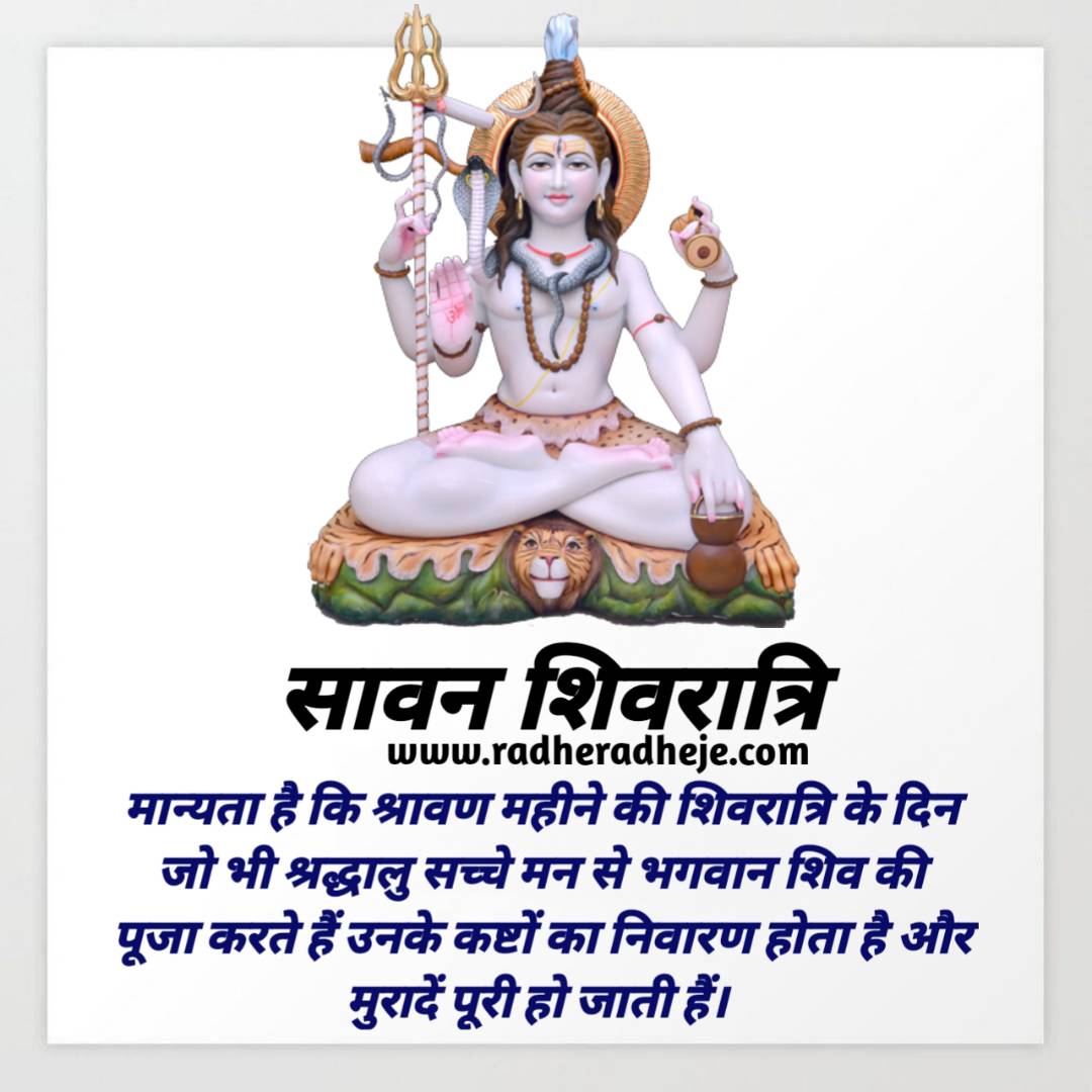 श्रावण शिवरात्रि मान्यता है कि श्रावण महीने की शिवरात्रि के दिन जो भी श्रद्धालु सच्चे मन से भगवान शिव की पूजा करते हैं उनके कष्टों का निवारण होता है और मुरादें भी पूरी हो जाती है हर हर महादेव