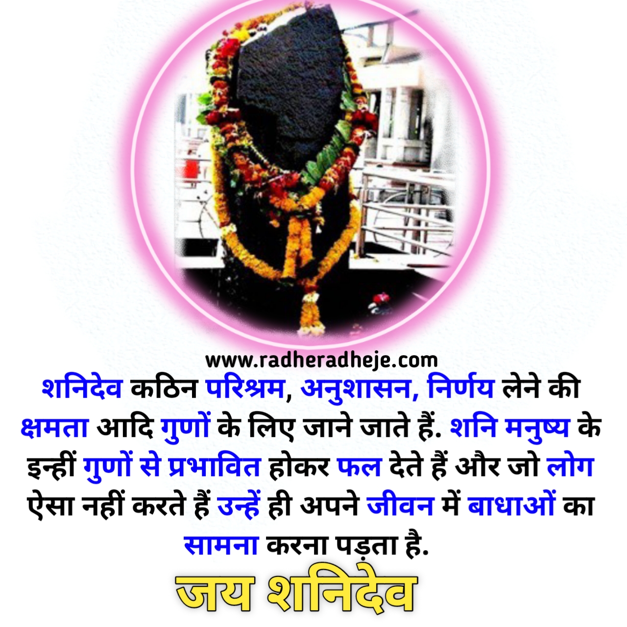 शनिदेव के चरित्र में कर्म की प्रधानता है। शनि उपासना कर्म और कर्तव्य के प्रति दृढ़ संकल्पित व प्रेरित करती है। शास्त्रों के मुताबिक शनि बुरे कर्म करने पर ही प्राणियों को अनेक तरह से दण्डित करते हैं, जो धार्मिक दृष्टि से शनि दशा, शनि की चाल या शनिदेव की क्रूर दृष्टि के रूप में जानी जाती है। माना जाता है कि सांसारिक जीवन में शनिदेव का यह दण्ड शरीर, मन या आर्थिक परेशानियों के रूप में मिलता है। चूंकि हर प्राणी कर्म व कर्तव्यों से किसी न किसी रूप में जुड़ा होता है, इसलिए जिम्मेदारियों को पूरा करते हुए पैदा हुई हित या स्वार्थ पूर्ति की भावना से जाने-अनजाने मन, विचार व कर्म दोषों का भागी बनता है। धर्म की दृष्टि से ऐसे दोषों का शमन प्रायश्चित व क्षमा द्वारा संभव है।