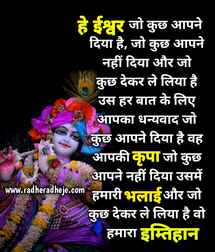 हे ईश्वर जो कुछ आपने दिया है, कुछ आपने नहीं दिया और जो कुछ देकर ले लिया है उस हर बात के लिए आपका धन्यवाद जो कुछ आपने दिया है वह आपकी कृपा जो कुछ आपने नहीं दिया उसमें हमारी भलाई और जो कुछ देकर ले लिया है वो हमारा इम्तिहान