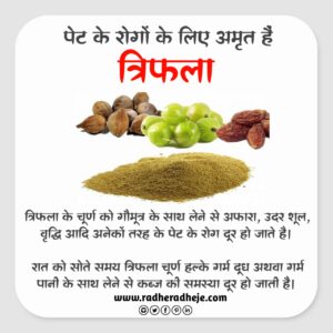 ३. त्रिफला चूर्ण के सेवन के एक घंटे बाद तक चाय-दूध कोफ़ी आदि कुछ भी नहीं लेना चाहिये।